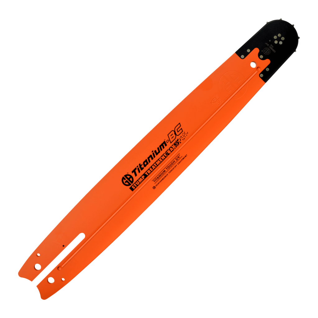 Our Titanium®-BC Stump Treatment guide bar shares all the same industry-leading features that come with the Titanium®-BC, plus the added precision-machined treatment manifold. Chamfered spray ports are specially engineered to apply spray treatment during the felling cut with excellent stump coverage.